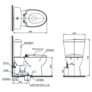 Bồn Cầu TOTO MS904T8 Một Khối Nắp Êm TC600VS