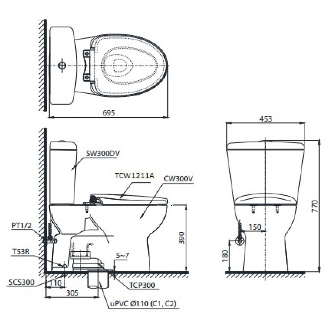 Bồn Cầu Treo Tường Cotto SC197627(F)