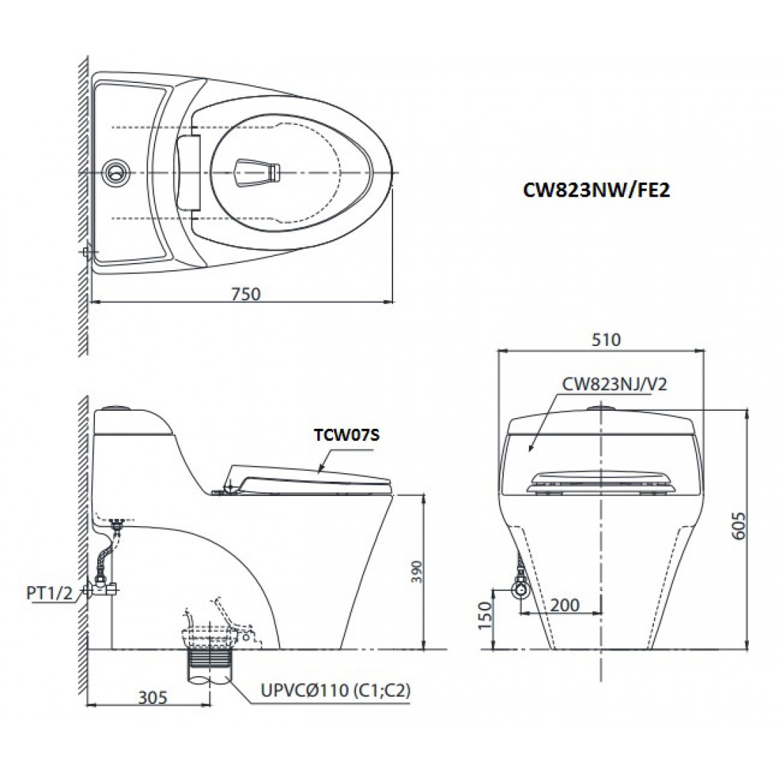 Bàn cầu nắp rửa cơ CW823NW/FE2 thuộc dòng sản phẩm hiện đại với thiết kế hoàn toàn mới, thể hiện vẻ đẹp toàn diện và sang trọng.