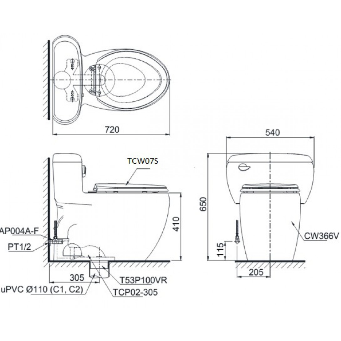 Bồn Cầu TOTO MS636DT8 1 Khối Nắp TC600VS