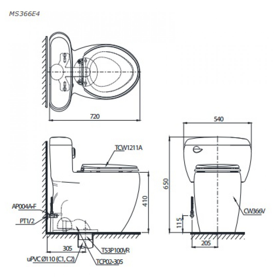 Bồn Cầu TOTO MS904E4 Một Khối Nắp Cơ