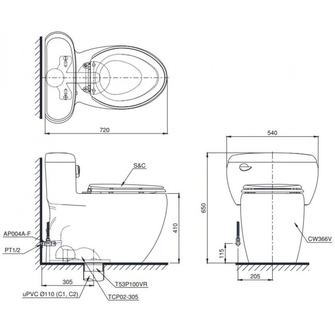 Bồn Cầu TOTO MS855DT8 Một Khối Nắp TC600VS