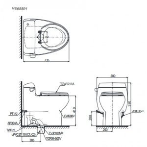 Bồn Cầu TOTO MS688T3 1 Khối Nắp TC385VS