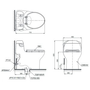 Thông tin cơ bản bồn cầu TOTO MS914RT2