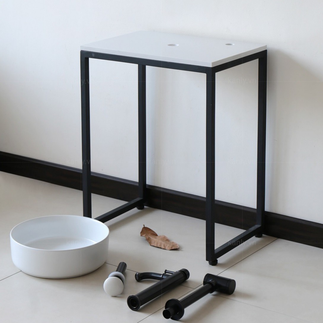 Bàn đặt chậu lavabo sở hữu kiểu dáng hình hộp chữ nhật mang đến sự cân bằng, vững chắc và đồng thời thể hiện nét tinh tế, thanh thoát trong thiết kế tối giản, phù hợp sử dụng với không gian kiến trúc hiện đại.