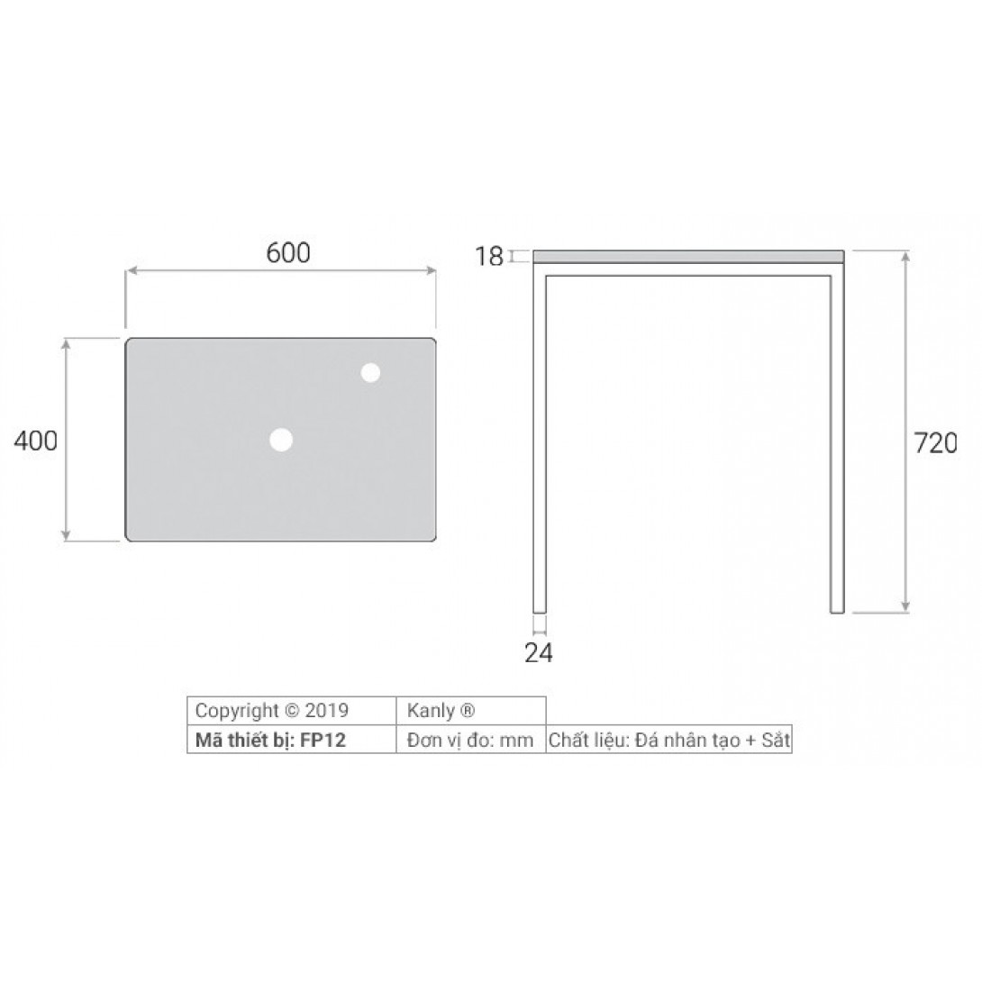 Bản vẽ bàn đặt chậu lavabo Kanly FP12 mặt đá