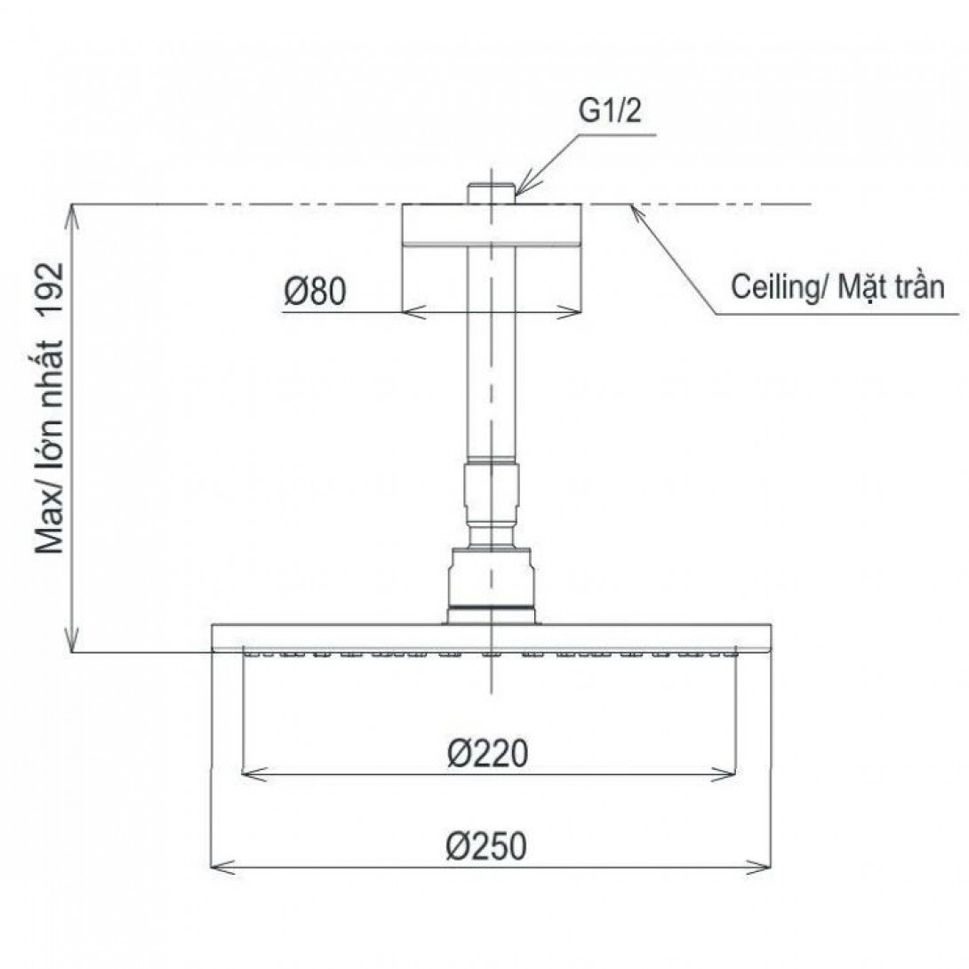 Vòi Sen Cây TOTO TBW08406A Nhiệt Độ Vuông 300mm