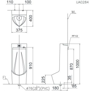 Bồn tiểu U0283 treo tường có thể lắp đặt với các van xả tiểu sau: A640, A670