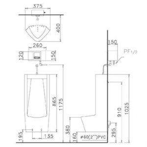 Bồn tiểu U0285 treo tường có thể lắp đặt với các van xả tiểu sau: BF412G, A652DC, A623, A624, A637, A648, A671,,…
