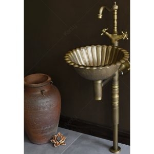 • Bộ lavabo treo tường bằng đồng thau đúc mang phong cách thiết kế cổ điển, mộc mạc và tạo điểm nhấn độc đáo, phù hợp lắp đặt sử dụng trong không gian kiến trúc nội ngoại thất theo xu hướng rustic, thiên nhiên sân vườn…