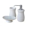 Bộ sản phẩm 3 món tiêu chuẩn gồm lọ đựng dung dịch mỹ phẩm rửa tay, lọ đựng ống kem bàn chải, đĩa để cục xà phòng tuy nhiên bạn có thể chỉ cần mua lẻ 1 món.