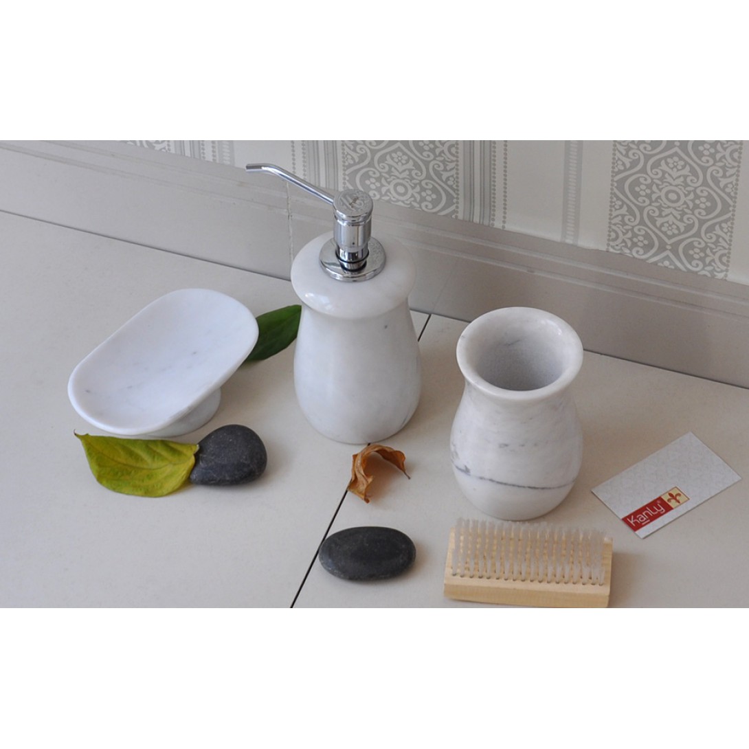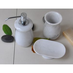 Bộ chai lọ trong nhà tắm phụ kiện bằng đá tự nhiên nguyên khối được những người thợ đá thủ công mỹ nghệ làm ra, tinh tế, độc đáo để khi trang bị kèm chậu đá chúng mang lại thêm hữu dụng, tiện nghi cho gian phòng tắm của bạn.