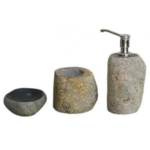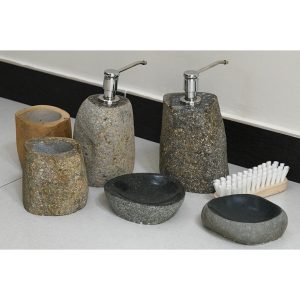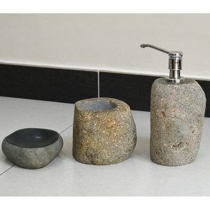 • Khi bạn đã trang bị chậu rửa bằng đá cuội thì bộ bình, hủ, chai, lọ, cốc, đựng, phòng tắm bằng đá là một sản phẩm đồng bộ chất liệu, tiện ích đi kèm.