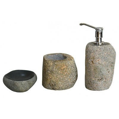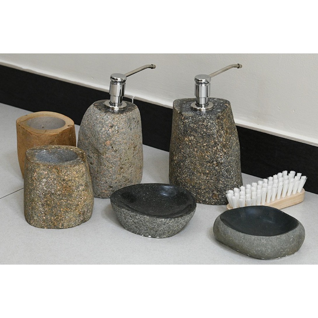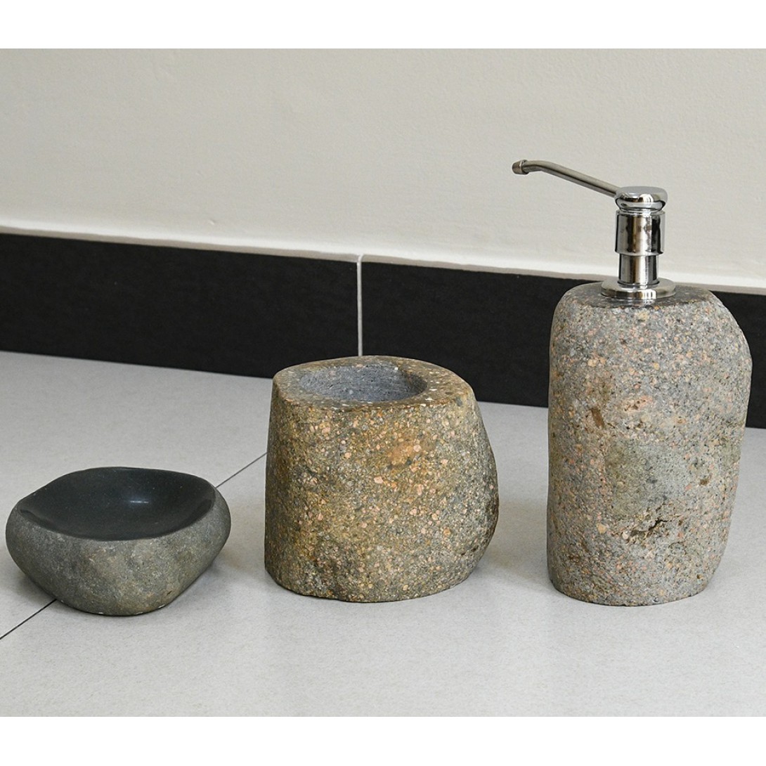 • Bộ bình, hủ, chai, lọ, cốc, đựng, phòng tắm, nhà tắm bằng đá cuội tự nhiên nguyên khối được những người thợ đá thủ công mmỹ nghệ làm ra, tinh tế, độc đáo để khi trang bị kèm chậu đá cuội chúng mang lại thêm hữu dụng, tiện nghi cho gian phòng tắm của bạn