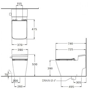 Bồn Cầu TOTO MS625DE4 1 Khối Nắp Rửa Cơ TCW1211A