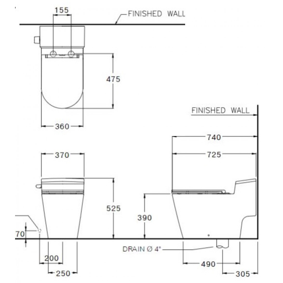 Bồn Cầu TOTO MS436T2 1 Khối Nắp TC393VS