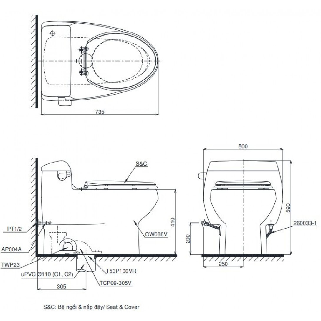 Bồn Cầu TOTO MS904T8 Một Khối Nắp Êm TC600VS