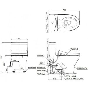 Bồn Cầu TOTO MS885DE2 Nắp Cơ Ecowasher