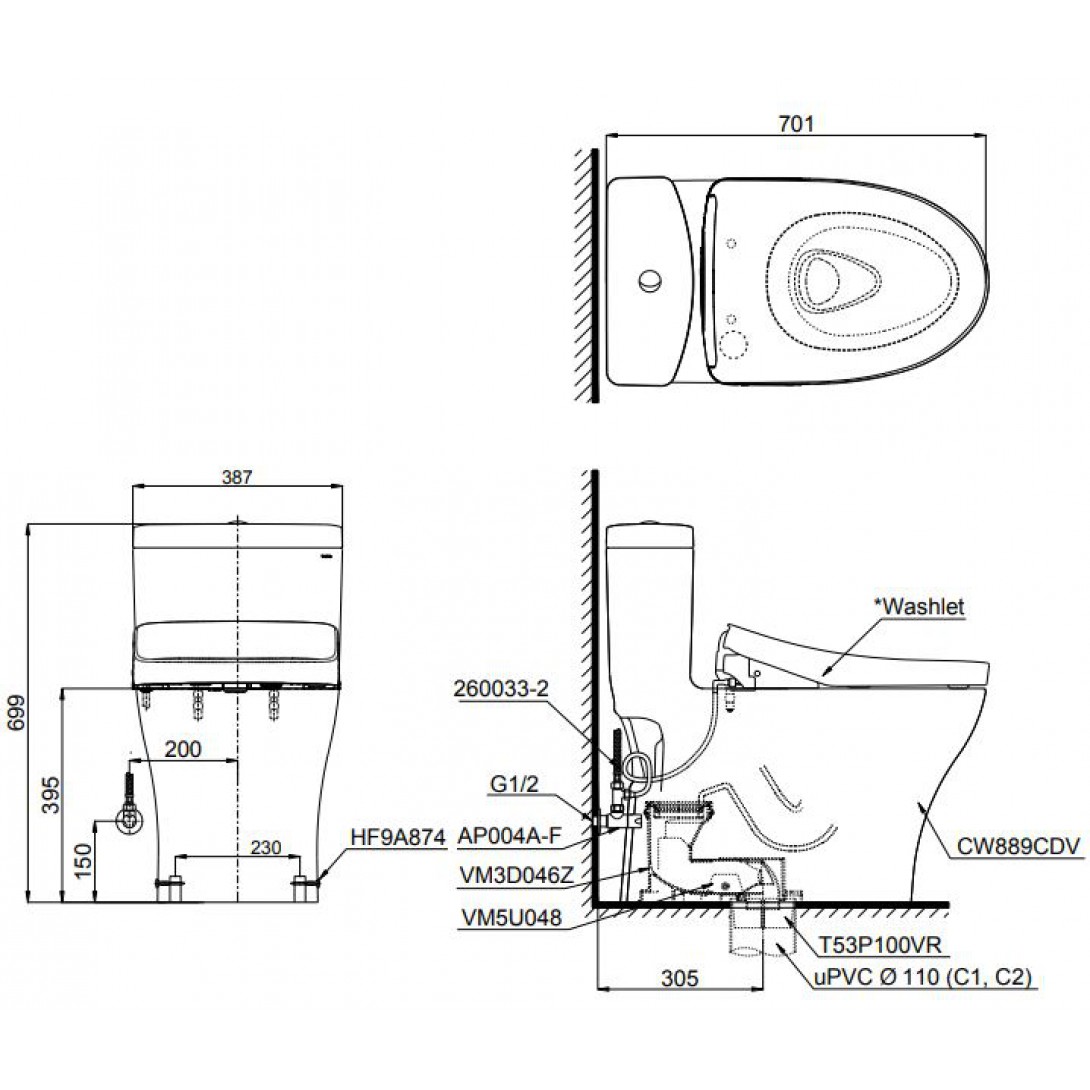 Bồn Cầu TOTO MS889DRE4 (MS889DE4) Một Khối Nắp Cơ
