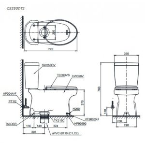 Thân Bồn Cầu TOTO CW192K/TC281SJ Treo Tường