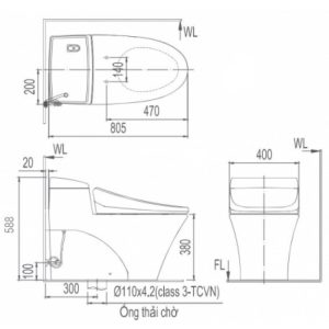 Bồn Cầu TOTO MS688T8 Một Khối Nắp TC600VS