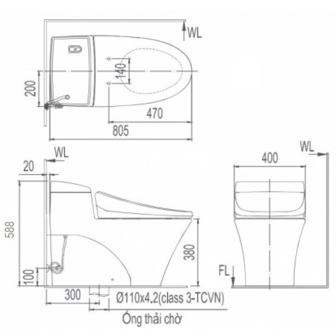 Bồn Cầu Treo Tường INAX AC-952/CW-S32VN Nắp Rửa Cơ