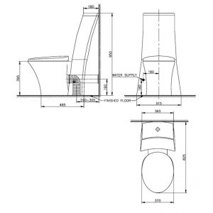 Tâm xả 190mm (Thoát ngang), 204-305 (Thoát sàn)