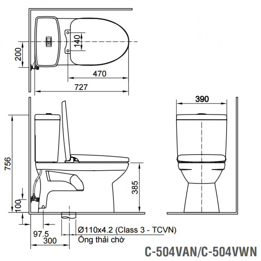 Bồn Cầu Xổm CAESAR CT1250 Thùng T1113 Treo Tường