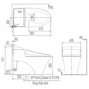 Bồn Cầu TOTO MS688T8 Một Khối Nắp TC600VS