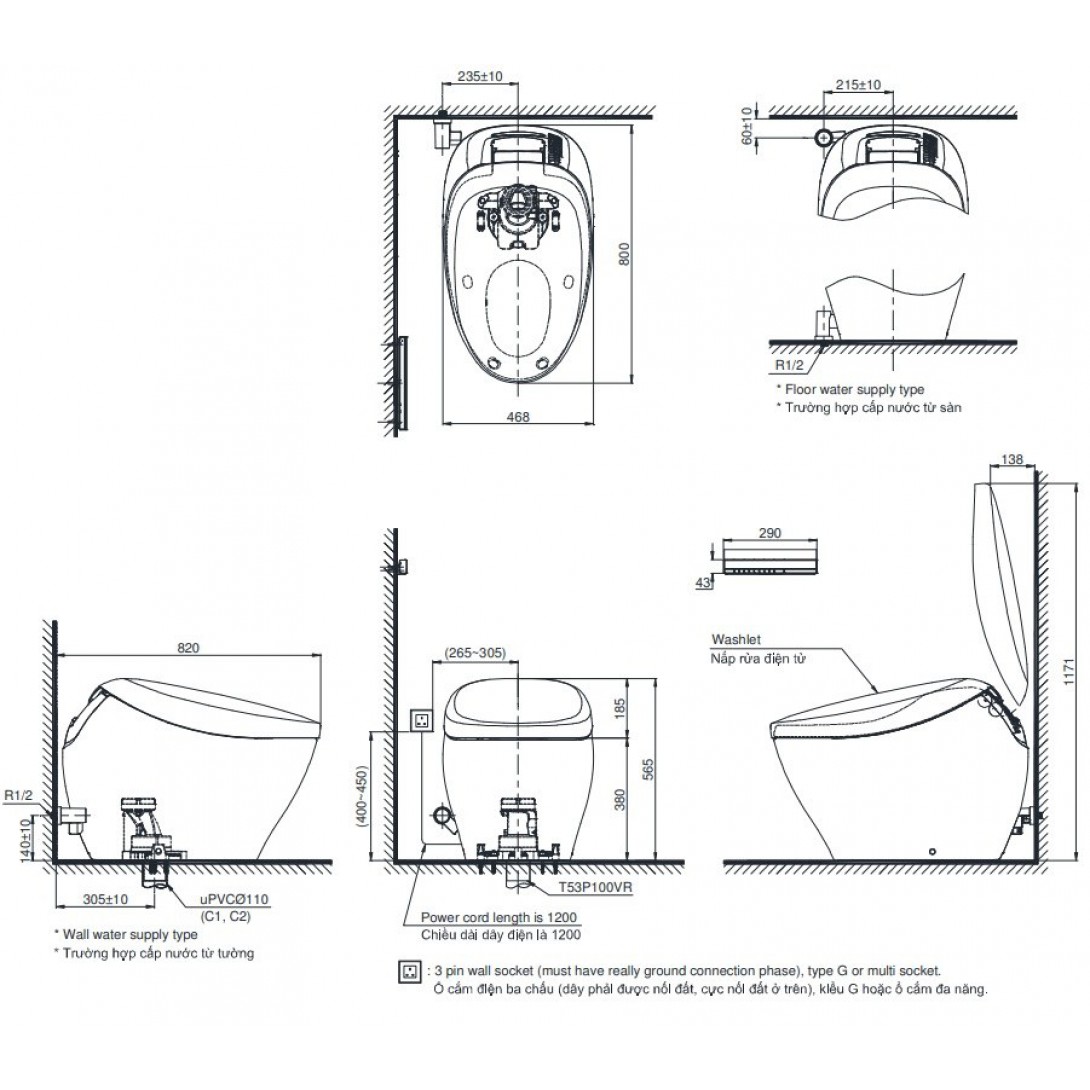 Bồn Cầu Thông Minh TOTO CS921VT/TCF85510GAA/T53P100VR Neorest AS