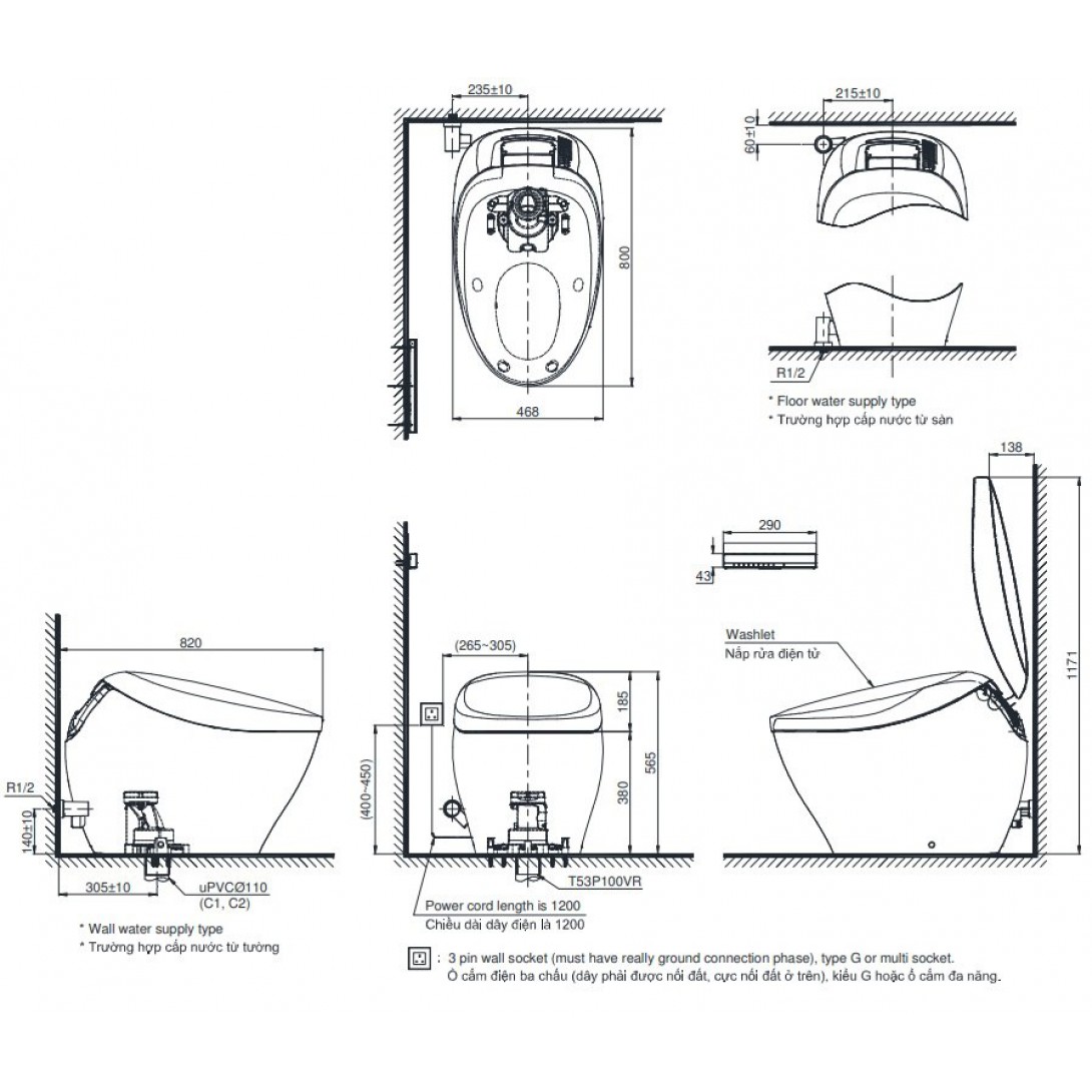Bồn Cầu Treo Tường INAX AC-952/CW-H18VN Nắp Điện Tử
