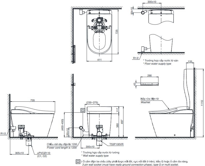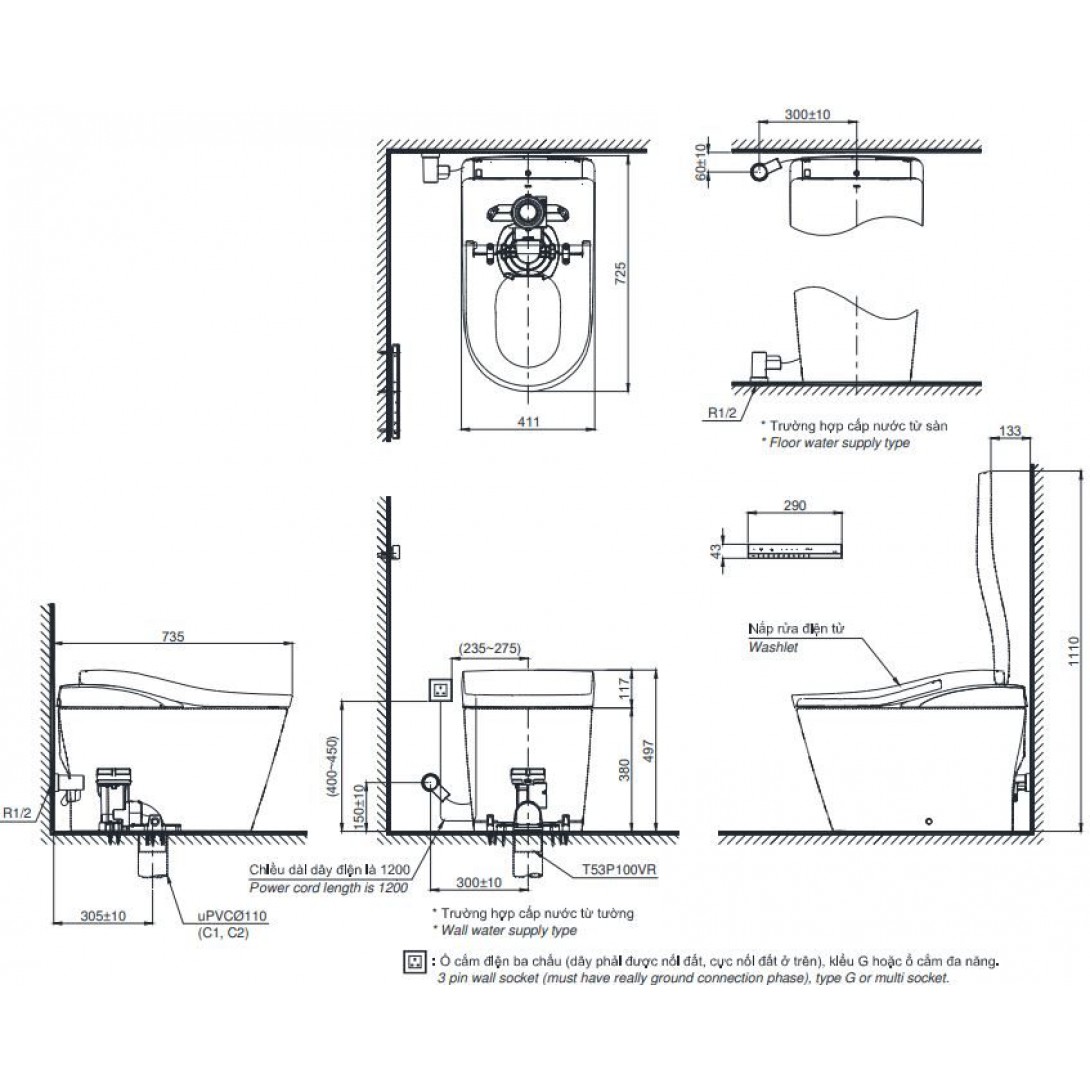 Bồn Cầu Treo Tường INAX AC-952/CW-S32VN Nắp Rửa Cơ