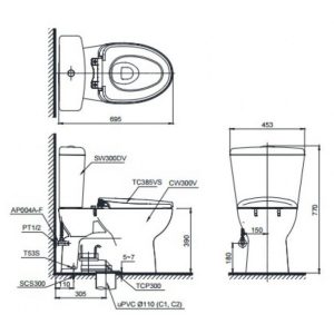 Bồn Cầu TOTO MS436T2 1 Khối Nắp TC393VS