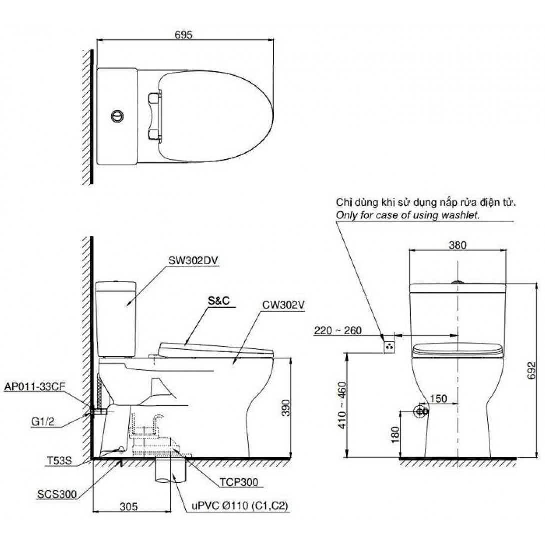 Bồn Cầu Treo Tường INAX AC-952/CW-KB22AVN Điện Tử