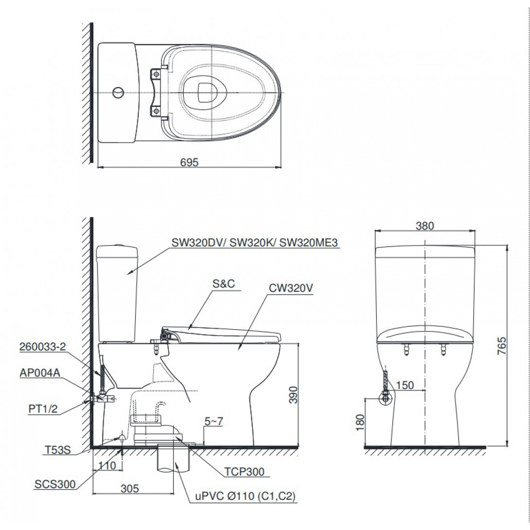 Bàn Cầu TOTO MS855DE2 Nắp Cơ Ecowasher