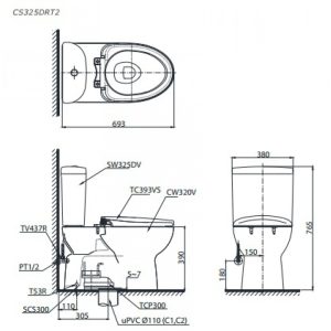 Tên sản phẩm: Bồn cầu TOTO CS325DRT2, bồn cầu TOTO hai khối, nắp đóng êm