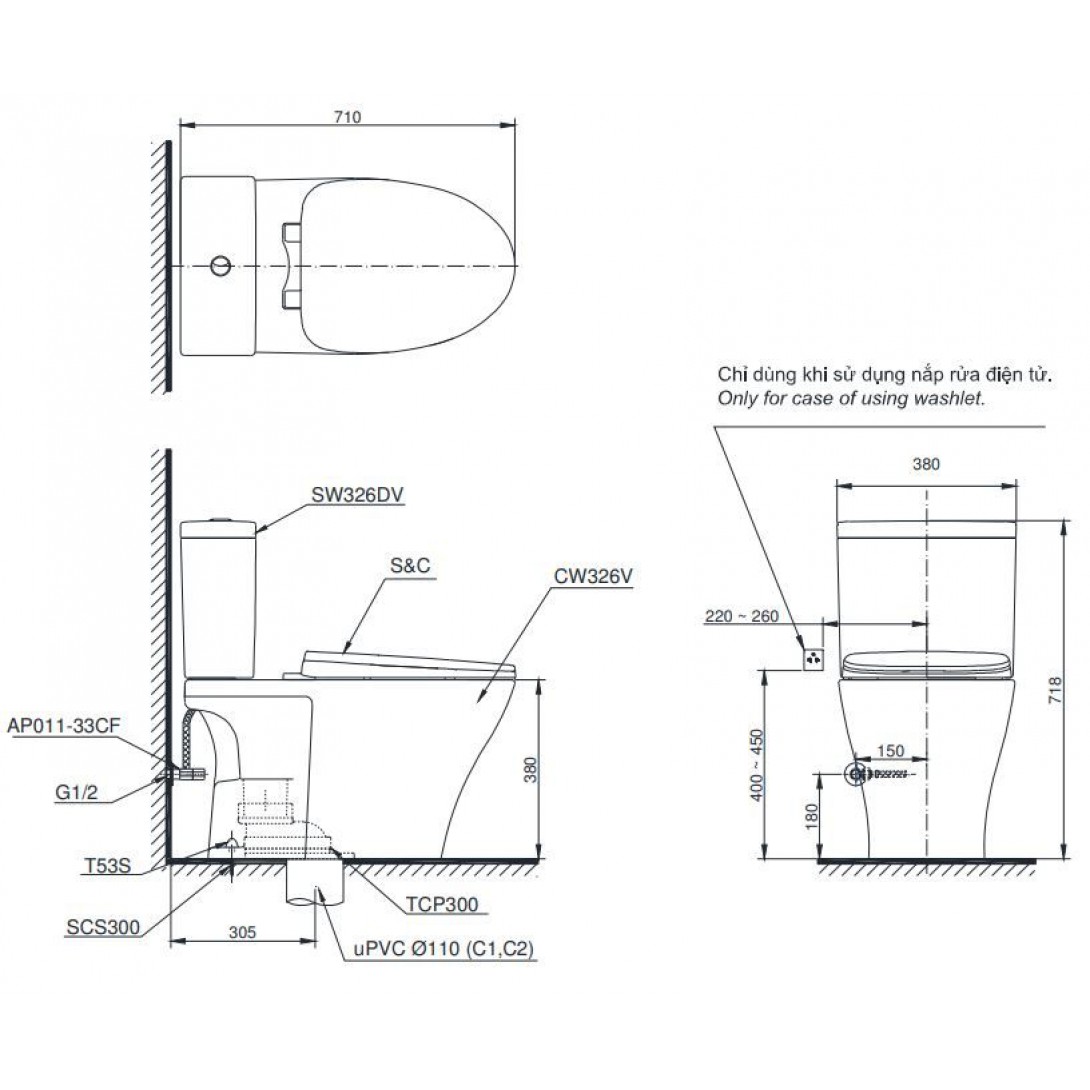 Bồn Cầu TOTO MS688T8 Một Khối Nắp TC600VS