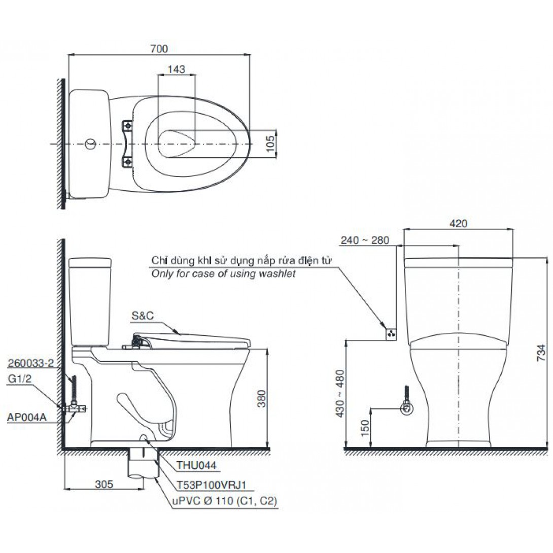 Bồn Cầu TOTO MS688T8 Một Khối Nắp TC600VS
