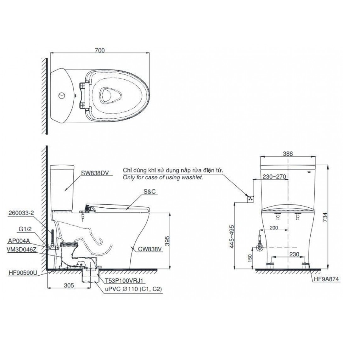 Bồn Cầu TOTO MS688T8 Một Khối Nắp TC600VS