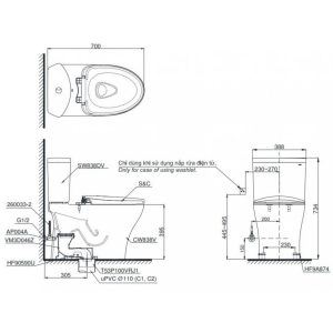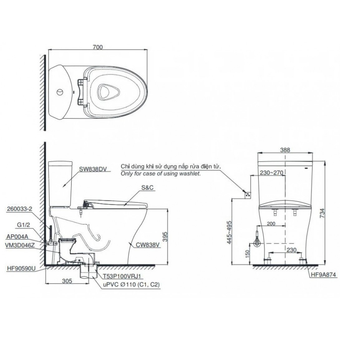 Bồn Cầu TOTO MS625DE4 1 Khối Nắp Rửa Cơ TCW1211A