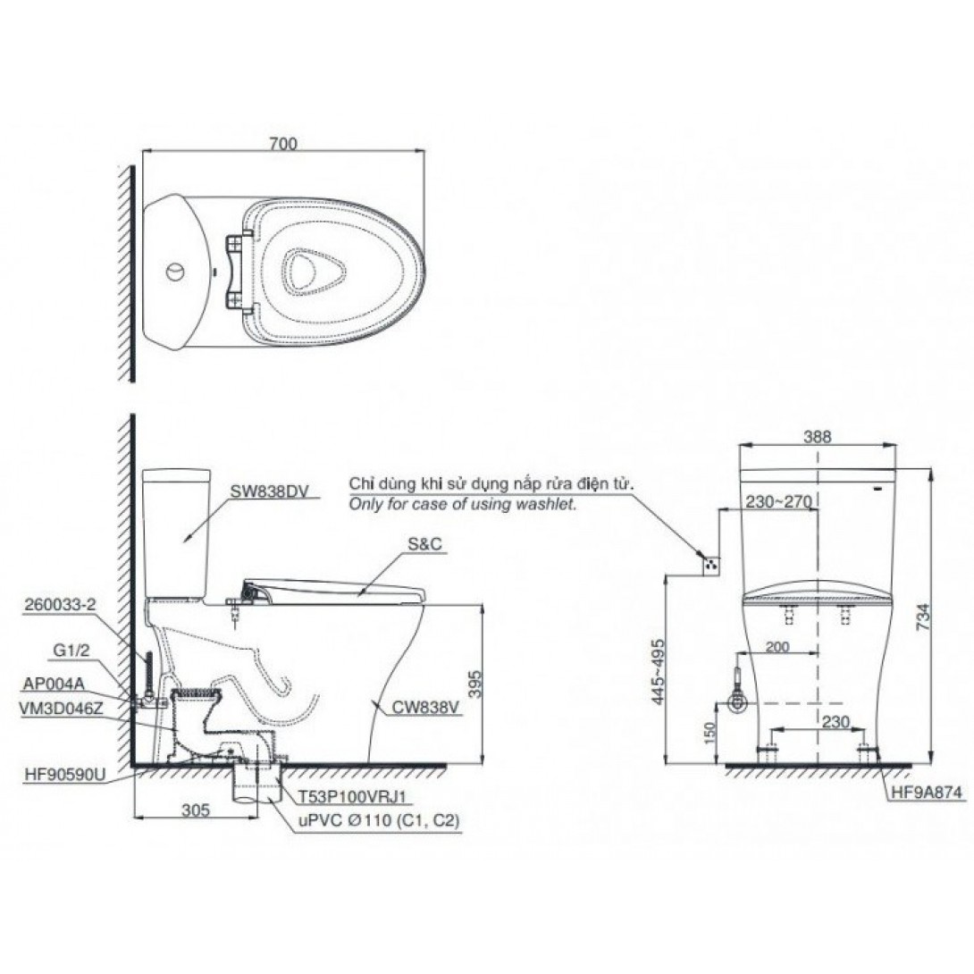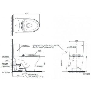 Bồn Cầu TOTO MS636DT8 1 Khối Nắp TC600VS