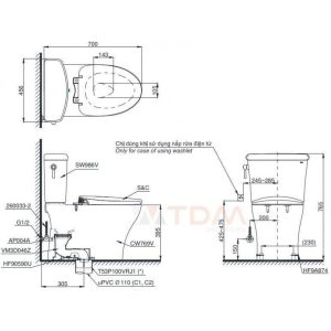 Bồn Cầu TOTO MS625DE4 1 Khối Nắp Rửa Cơ TCW1211A