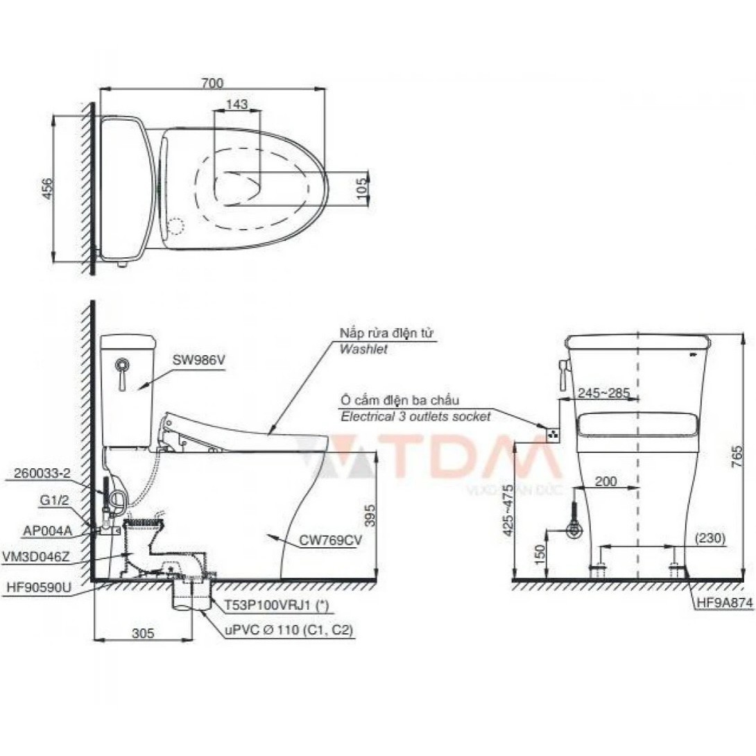Bồn Cầu TOTO MS885DE2 Nắp Cơ Ecowasher