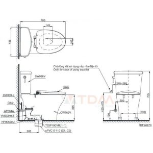 Bồn Cầu TOTO MS636DT8 1 Khối Nắp TC600VS