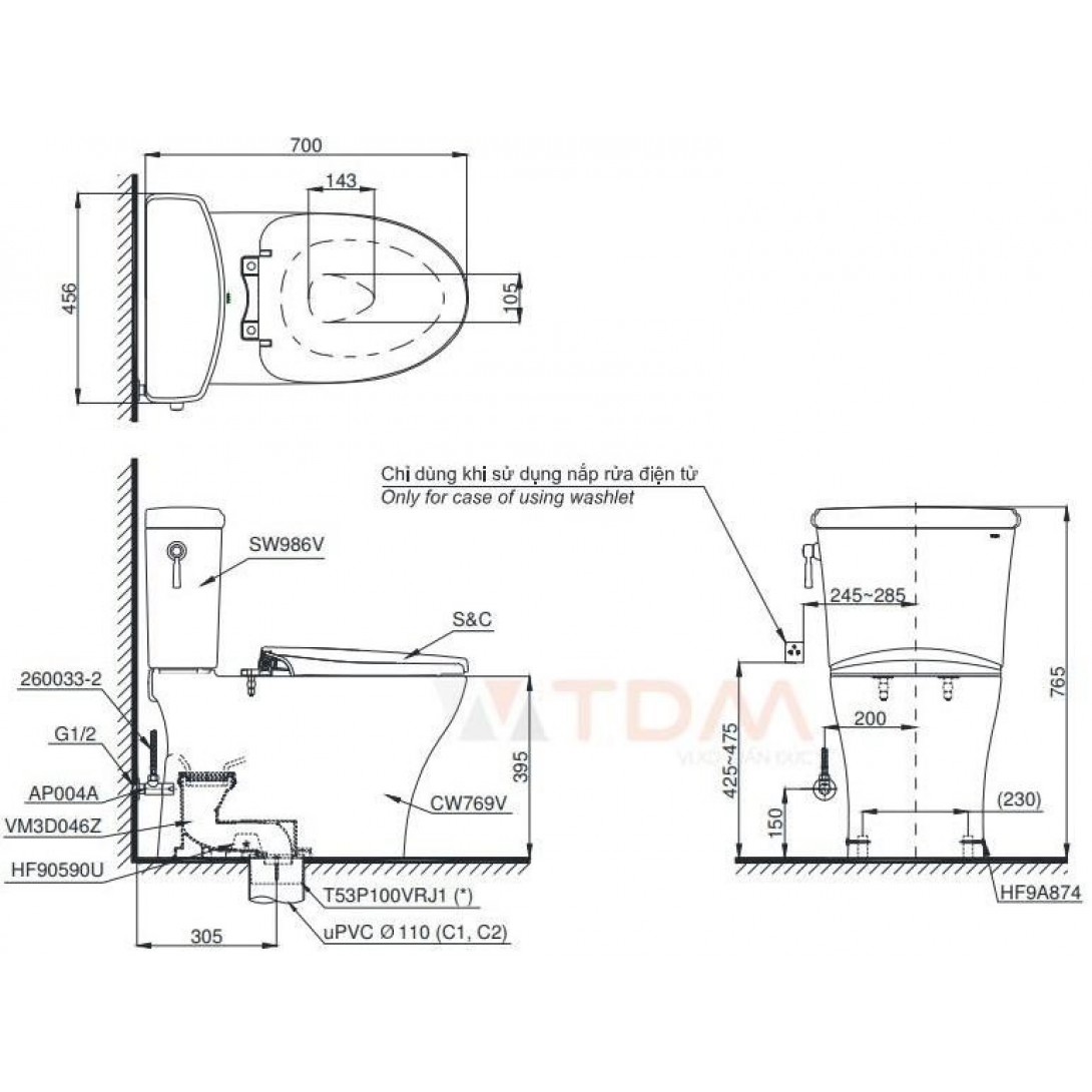 Bồn Cầu TOTO MS889DRE4 (MS889DE4) Một Khối Nắp Cơ