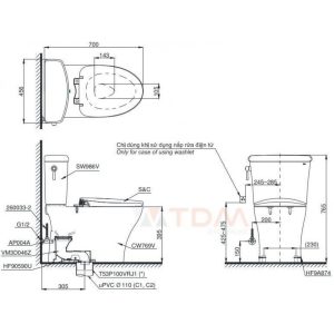 Bồn Cầu TOTO MS688T8 Một Khối Nắp TC600VS