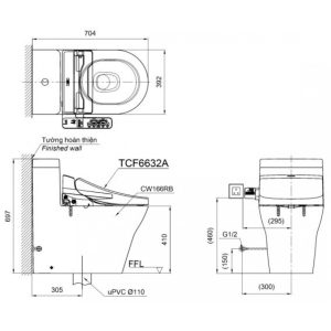 Bồn Cầu TOTO MS625DE4 1 Khối Nắp Rửa Cơ TCW1211A