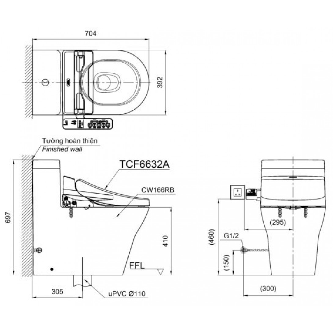 Bồn Cầu Treo Tường INAX AC-952/CW-S15VN Nắp Rửa Cơ
