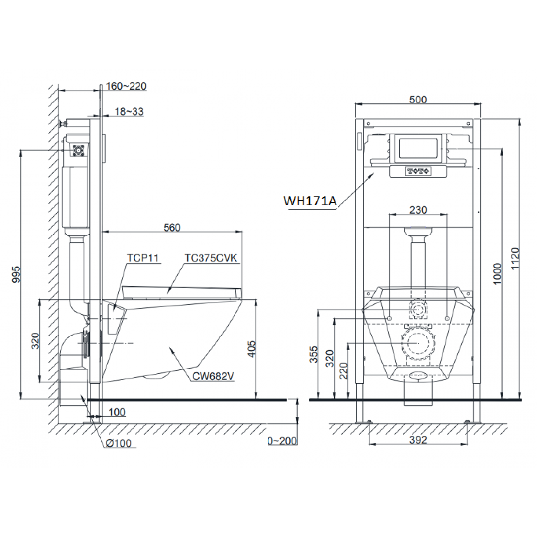 Thân Bồn Cầu TOTO CW192K/TC281SJ Treo Tường