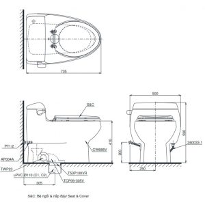 Bồn Cầu TOTO MS436T2 1 Khối Nắp TC393VS